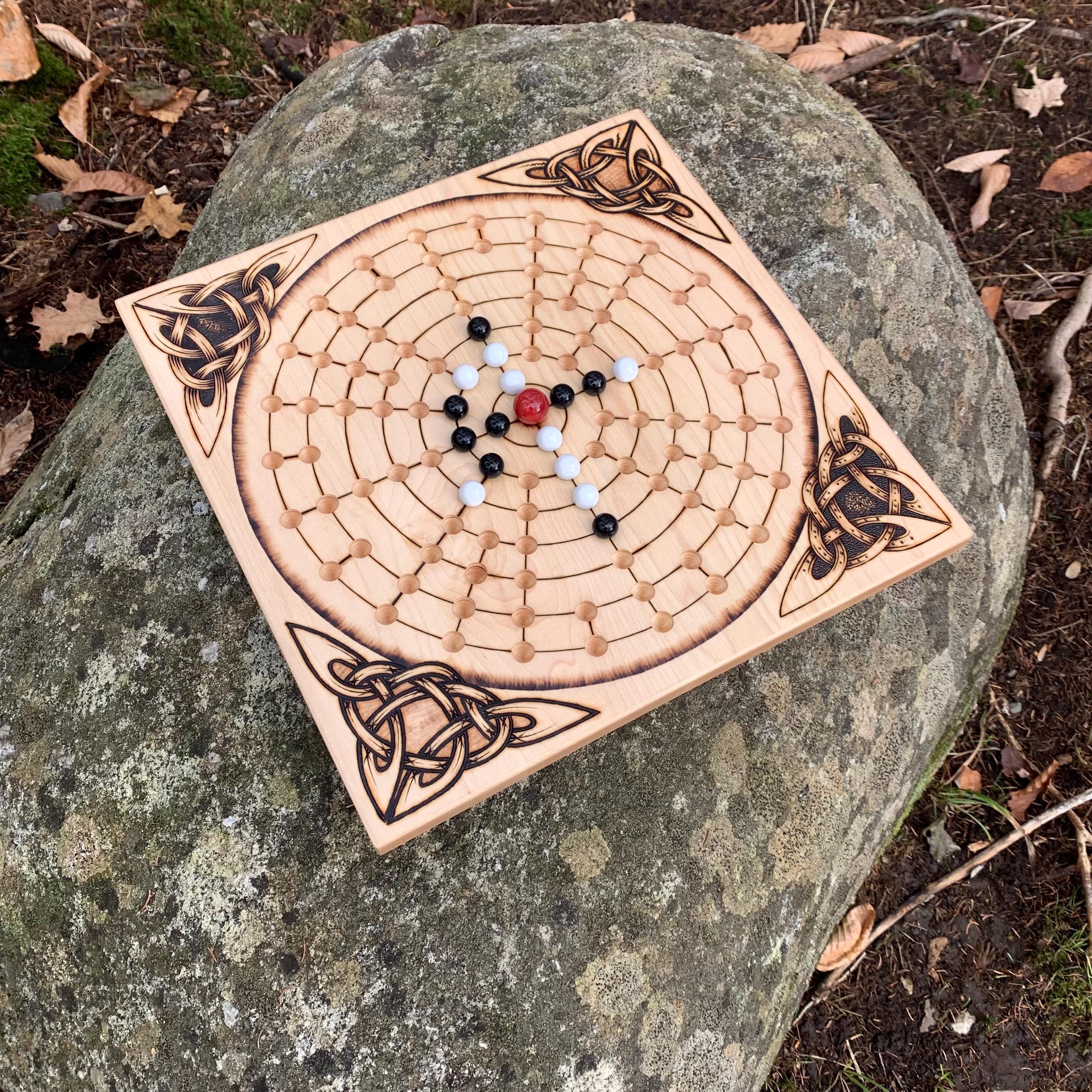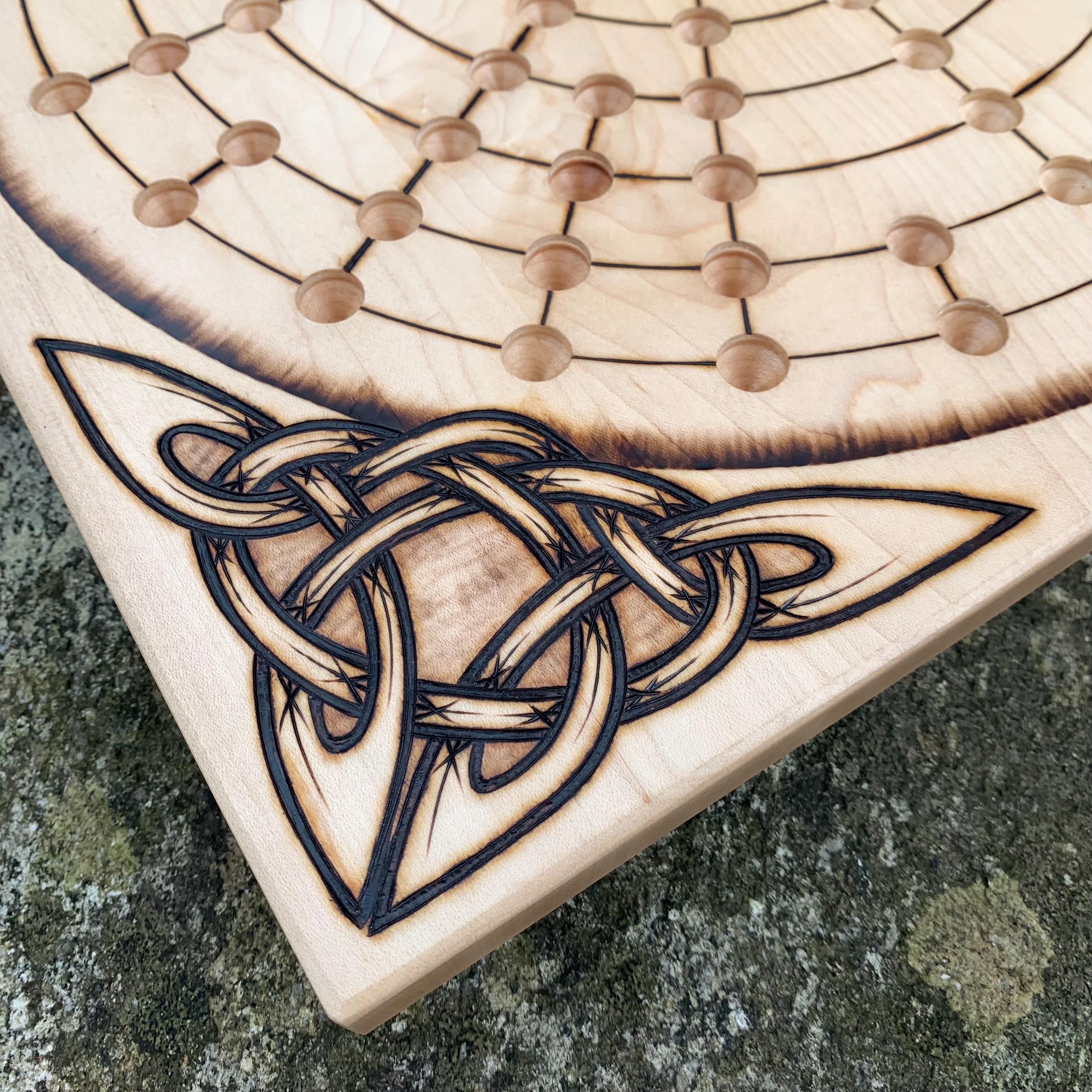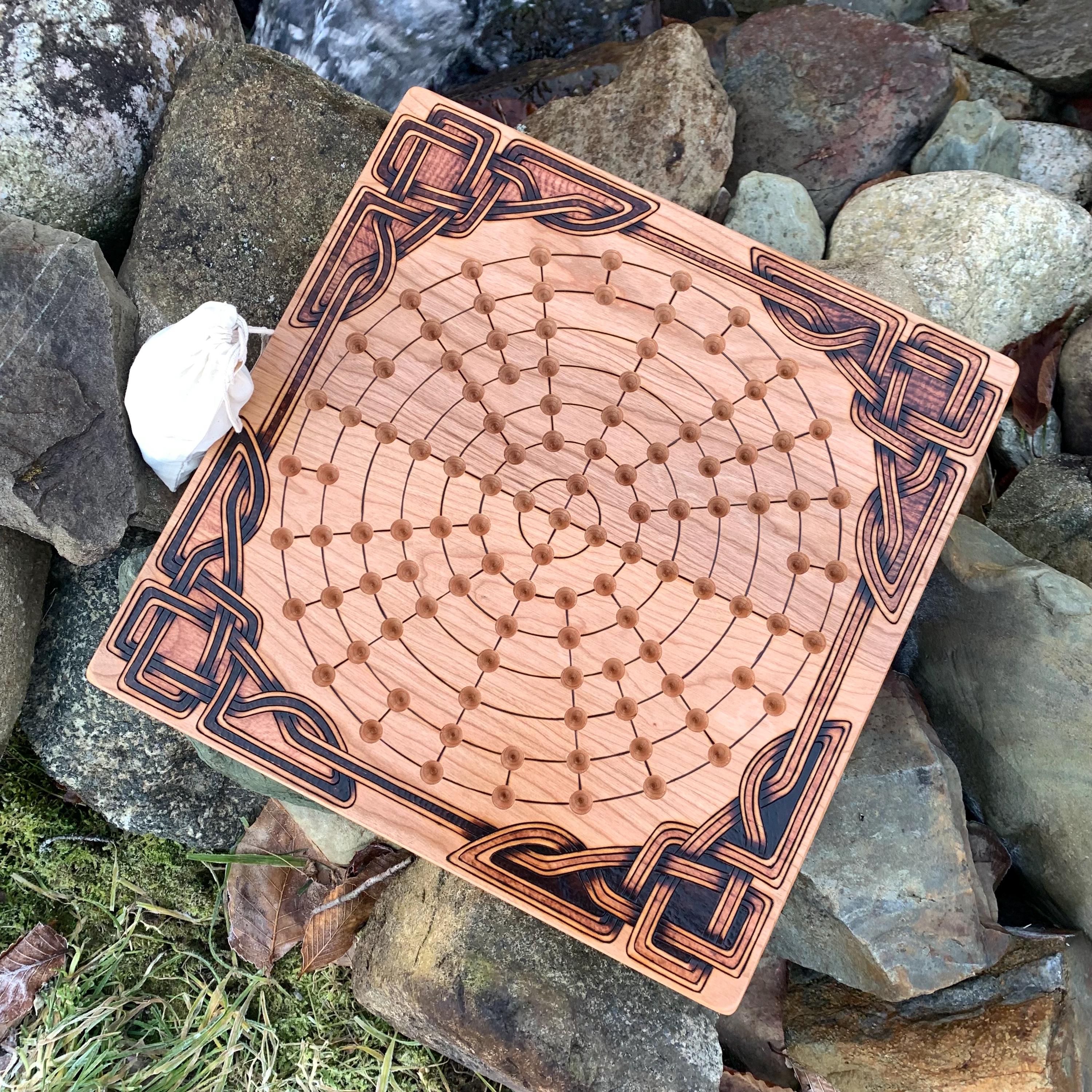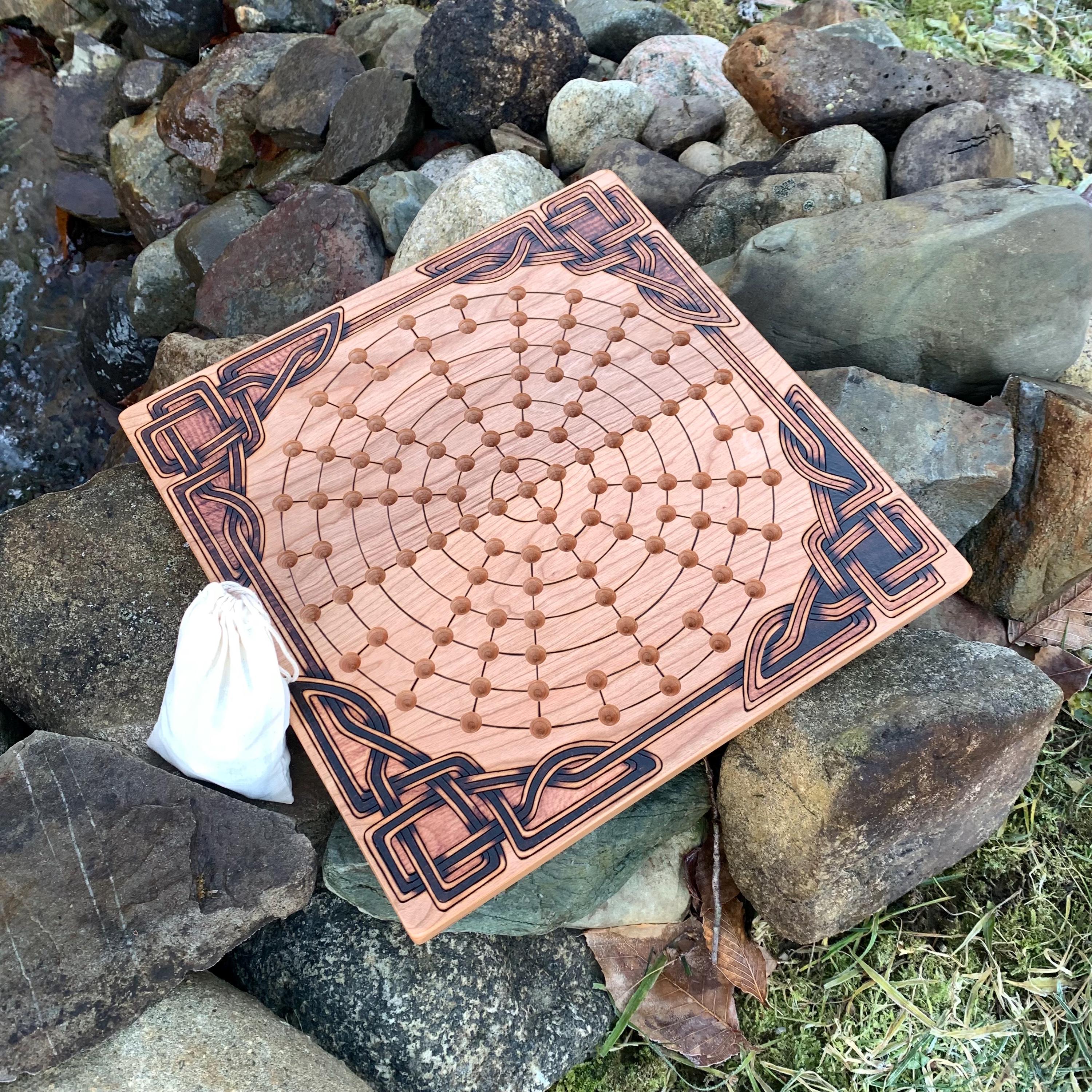 This exquisite wooden board game is a wonderful addition to any game enthusiast's collection. Fidchell (meaning "wood knowledge") is an ancient Celtic board game, deeply rooted in the history of the Irish and Welsh alike. Also known as "Gwyddbwyll" and "Faerie Chess", the layout and premise of the game is linked to Celtic symbolism, mythology, and even the ancient Celtic calendar. The game itself is intensely challenging despite its simple premise, and has a high potential of repeated and variable play. Each Fidchell game board is created as a functional piece of art with heirloom potential, built to last for generations - a splendid way to spend quality time with a friend or family member.