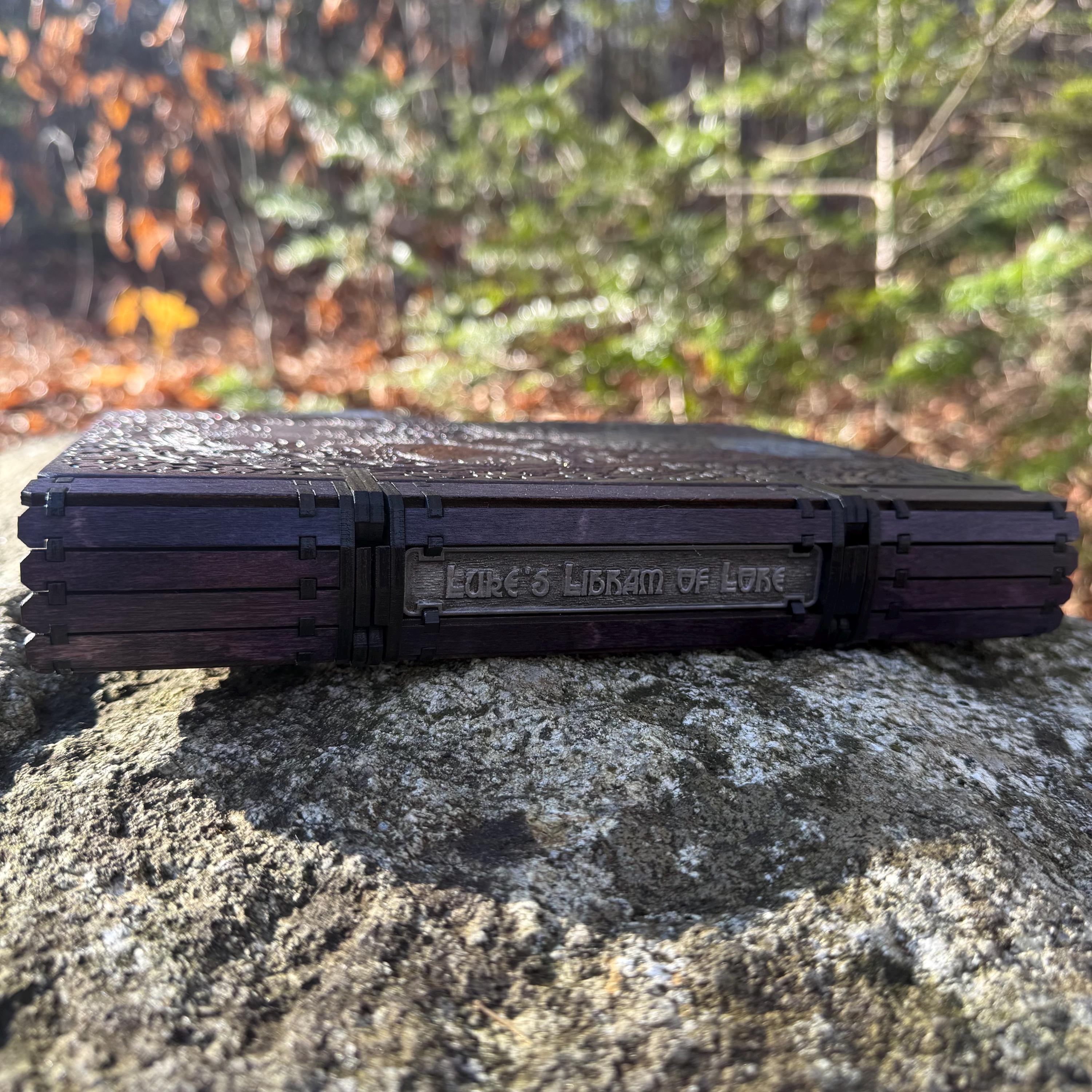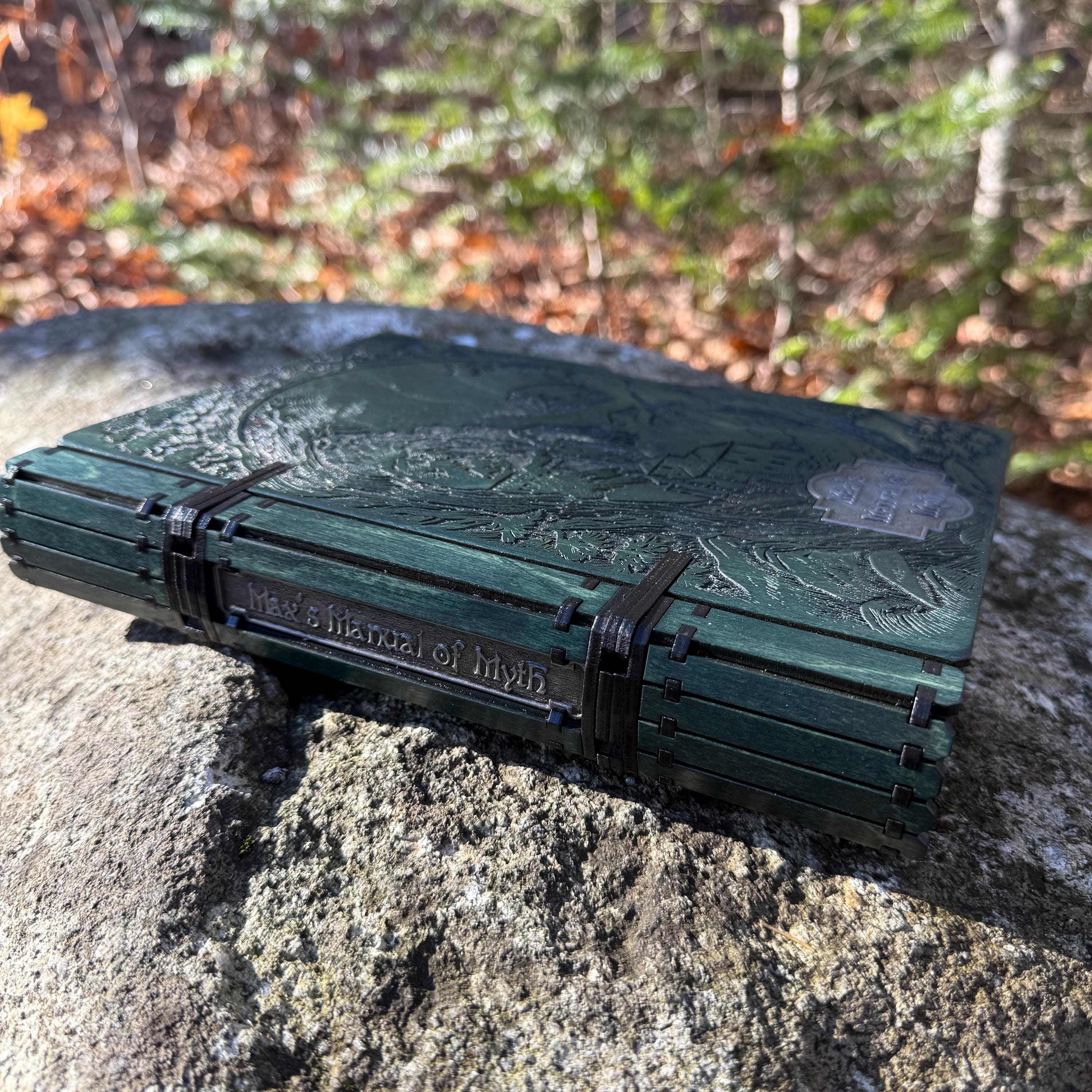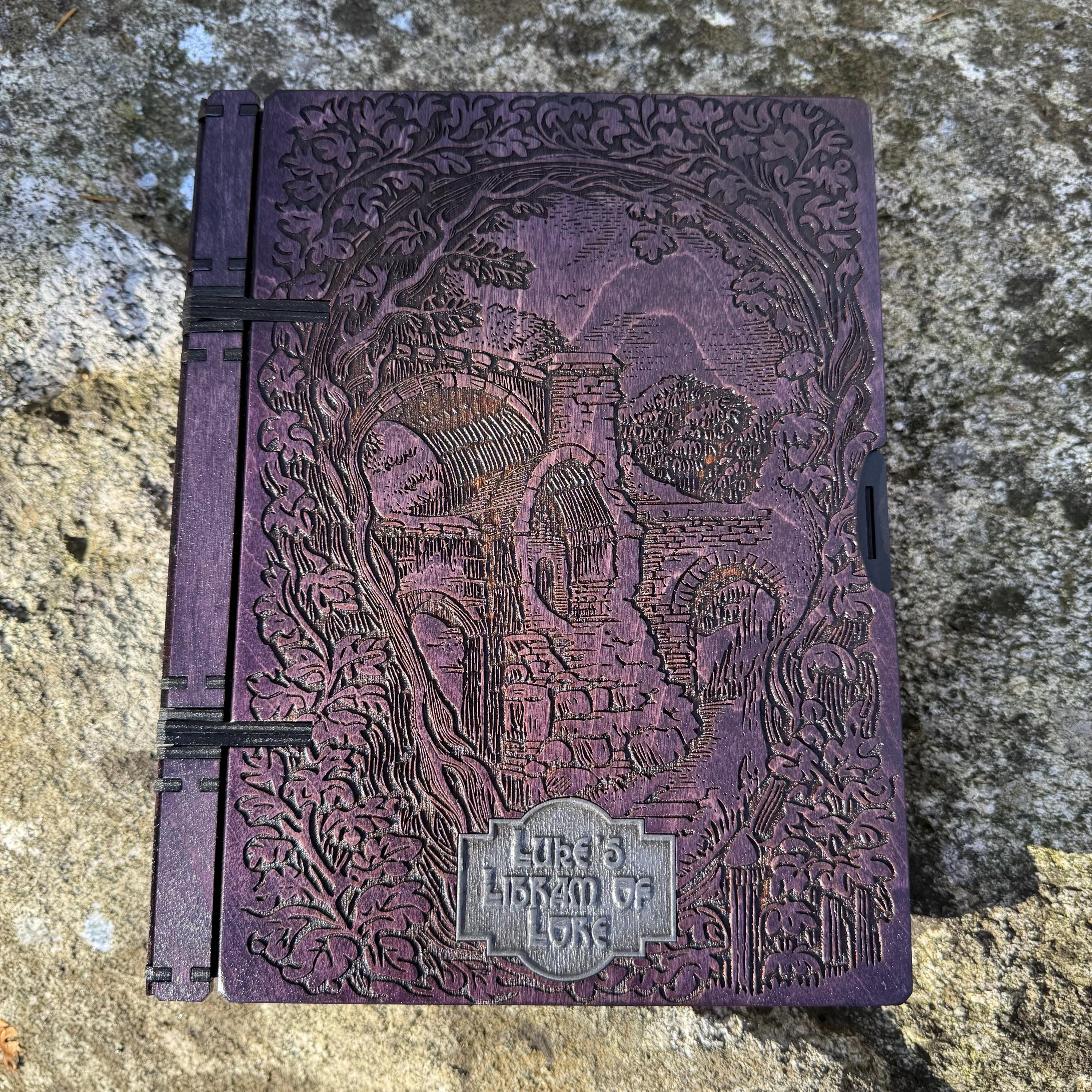 Whether used as a notebook for RPG gaming, as a personal journal, recipe book, or photo album, this handcrafted wooden binder will help to keep campaign info, special notes, recipes, or pictures securely collected within its elaborately engraved covers. This A5-sized binder is created from resilient birch plywood, giving the binder added durability and style, and it has a great solid feel to it. The binder can be fully customized to match any personal style; customers can select from a variety of colors and artwork options, as well as personalize their title. The binder has a .78-inch/20mm ring diameter, which can hold up to 100 sheets of paper with a weight of 100 GSM (much more with a lighter weight paper). A great gift for role-playing game GMs and players, for those who keep handwritten journals, and/or those who appreciate unique and useful wooden creations. This binder is functional and durable, but also looks great on a bookshelf, end table, or desk!