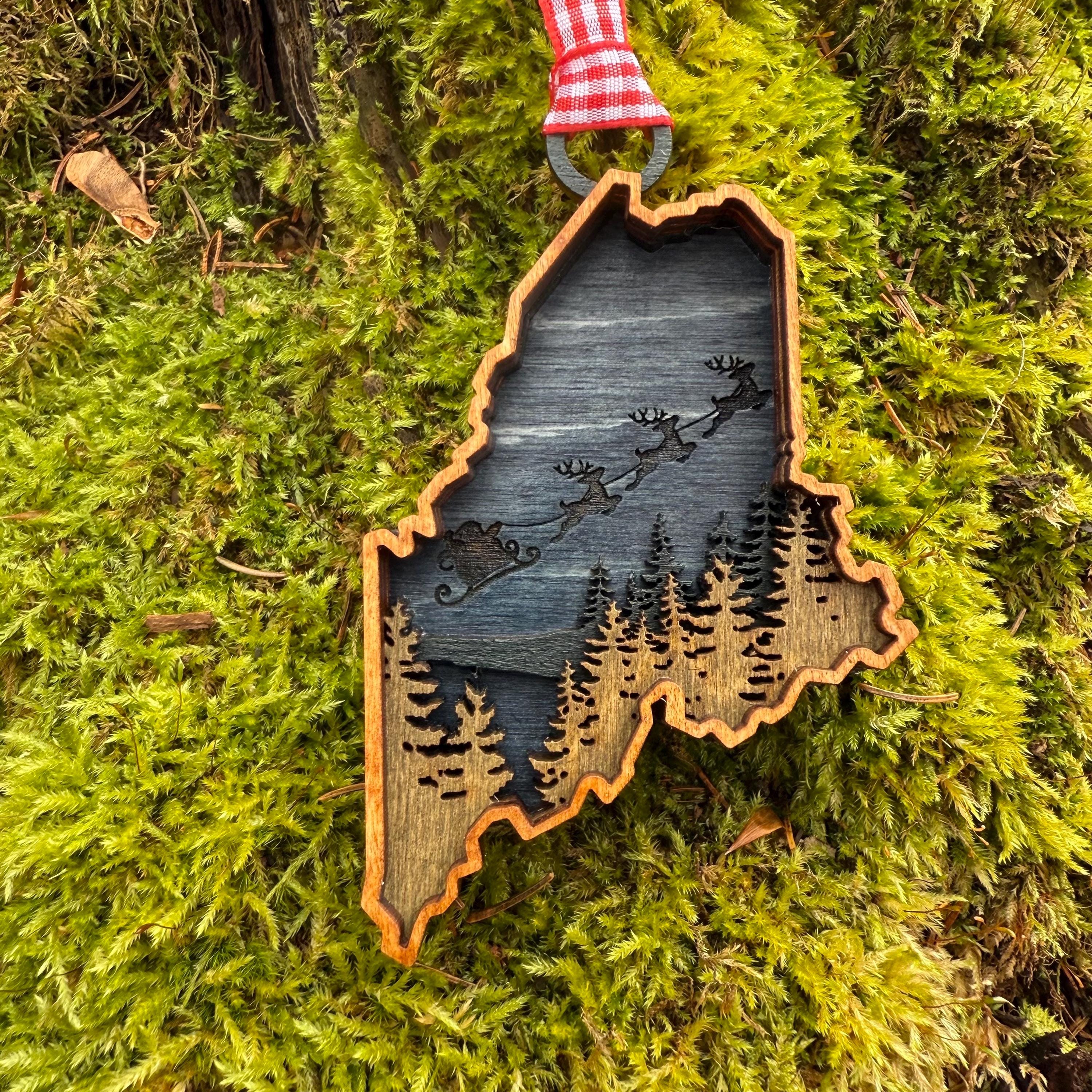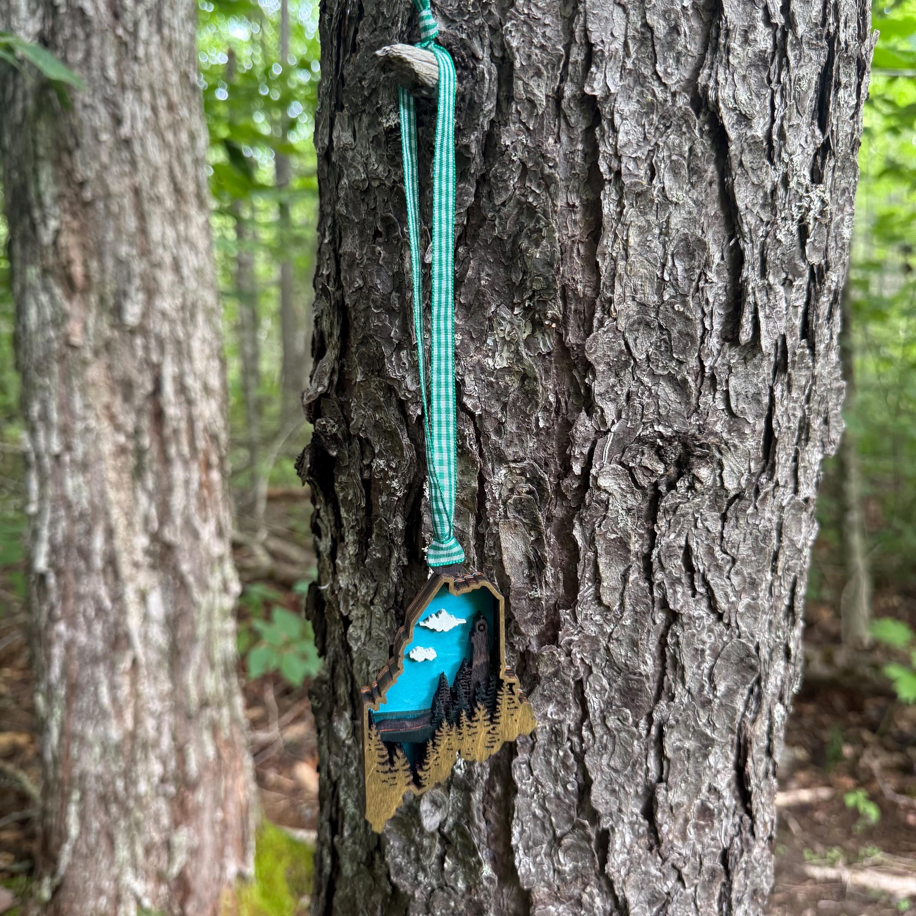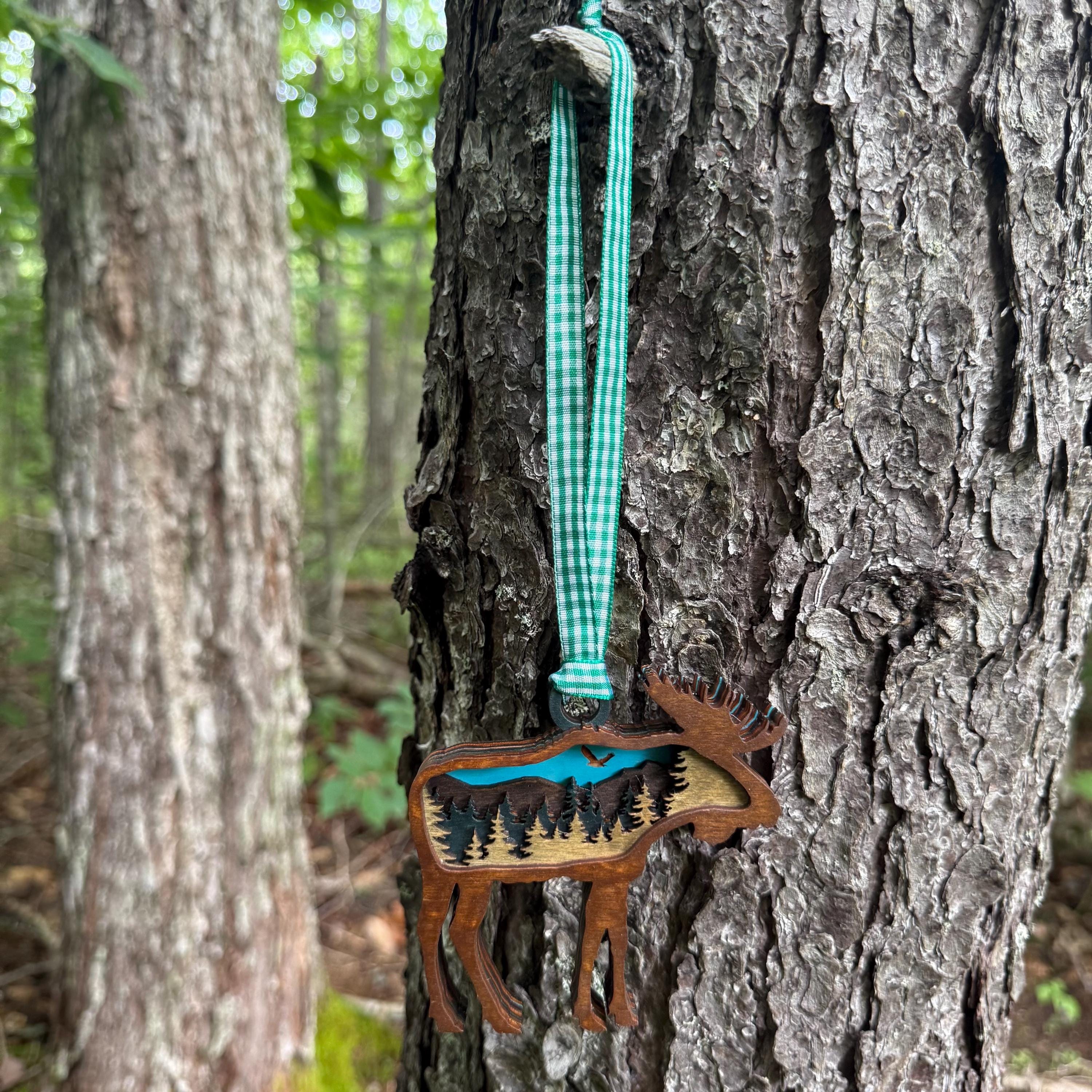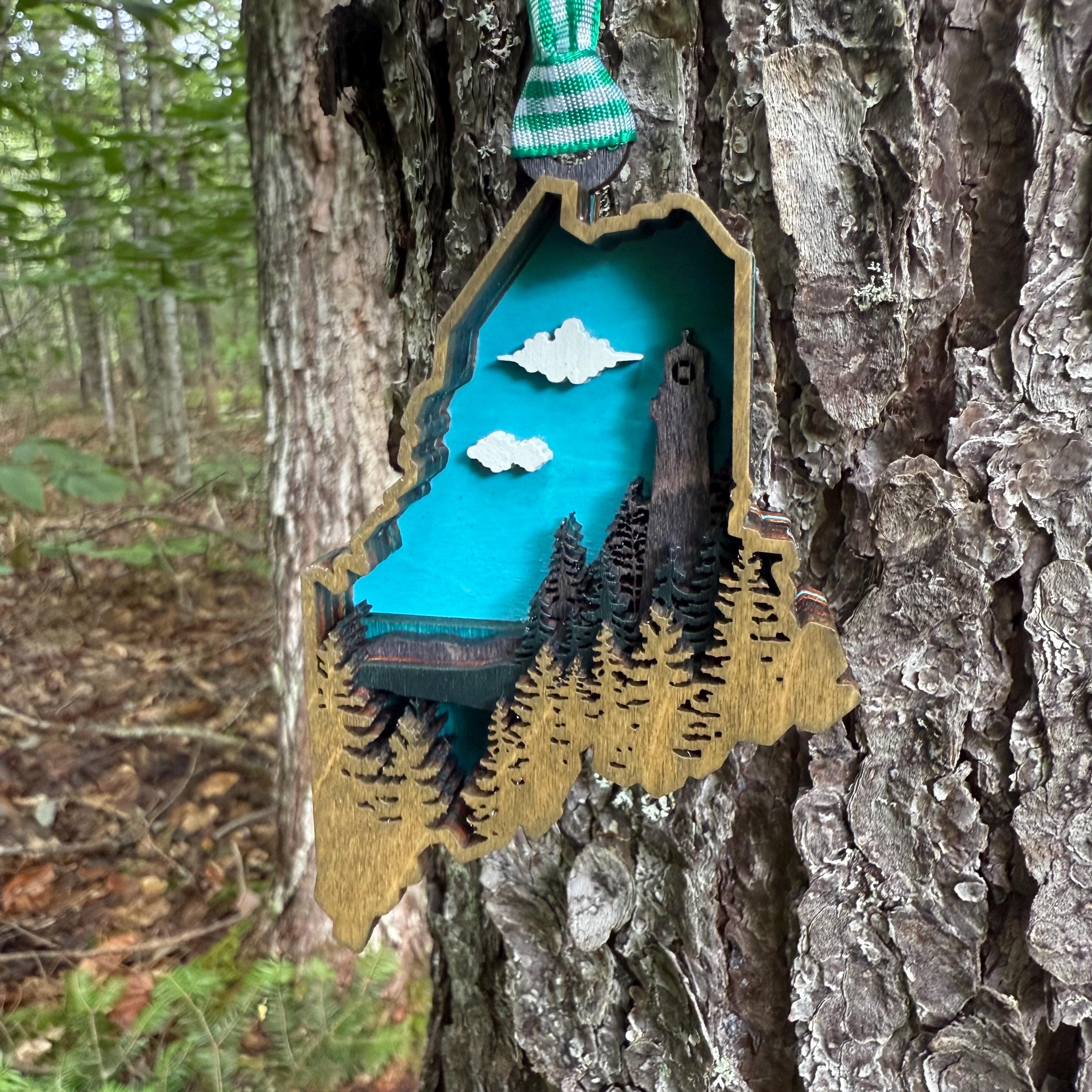 Add a bit of New England and Maine to your holiday decor with one of these handcrafted wooden ornaments! Created from 5-6 stacked layers of precisely cut and stained birch plywood, these rustically-styled ornaments are colorful and captivating, with checkered ribbon lanyards to complete the festive holiday look. Each and every ornament varies in some small detail from the next, making each one unique! Handcrafted in DownEast Maine - limited quantities available!
