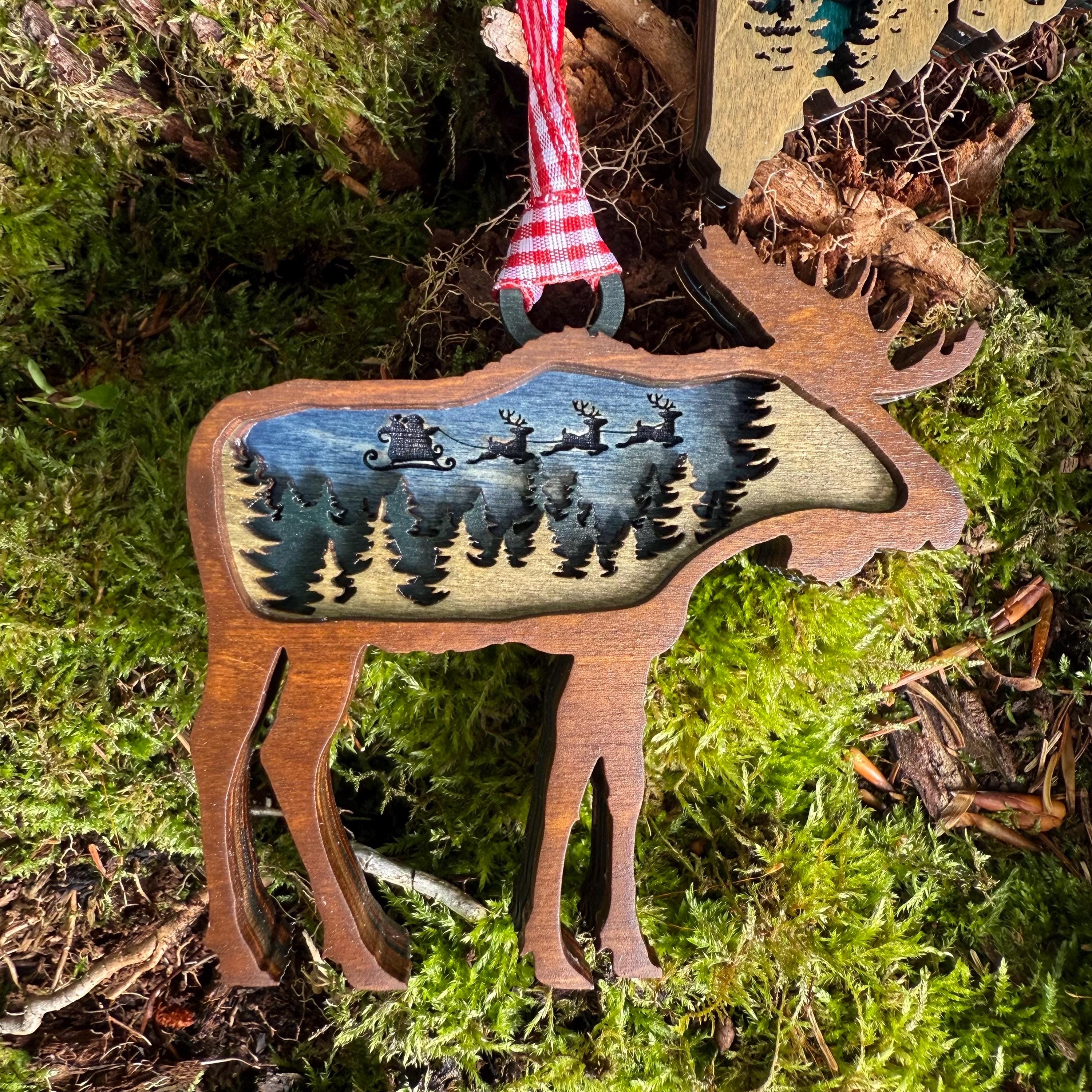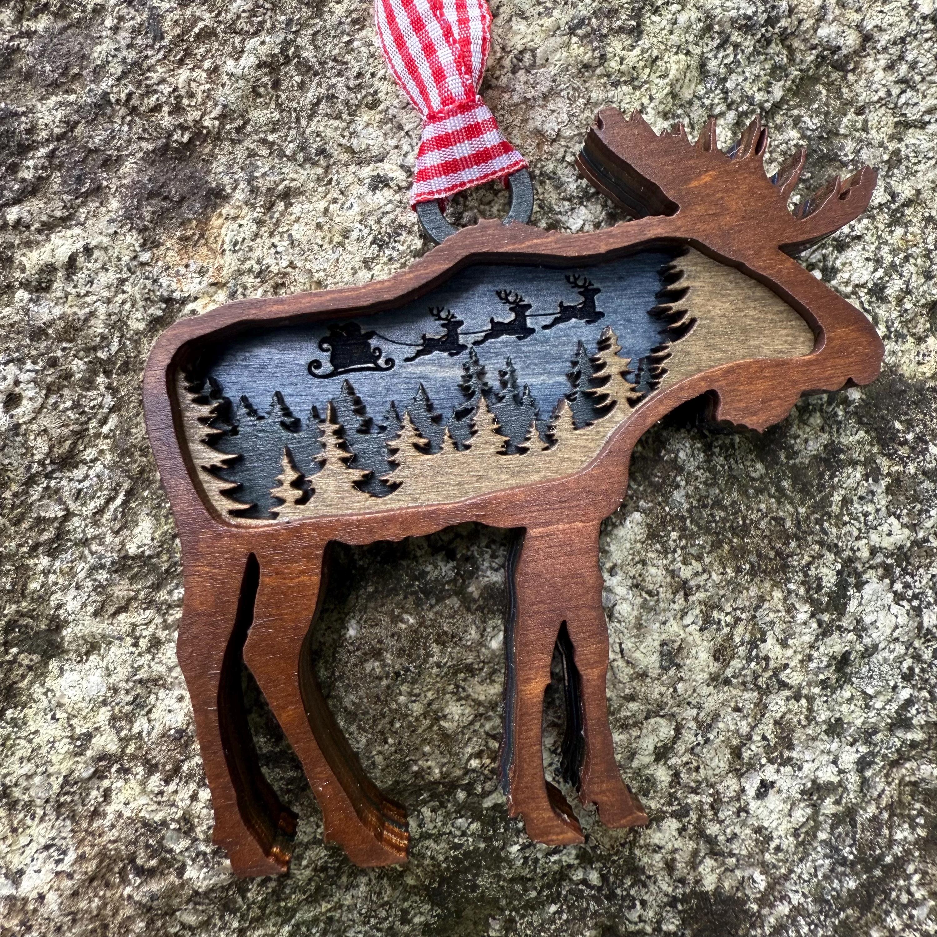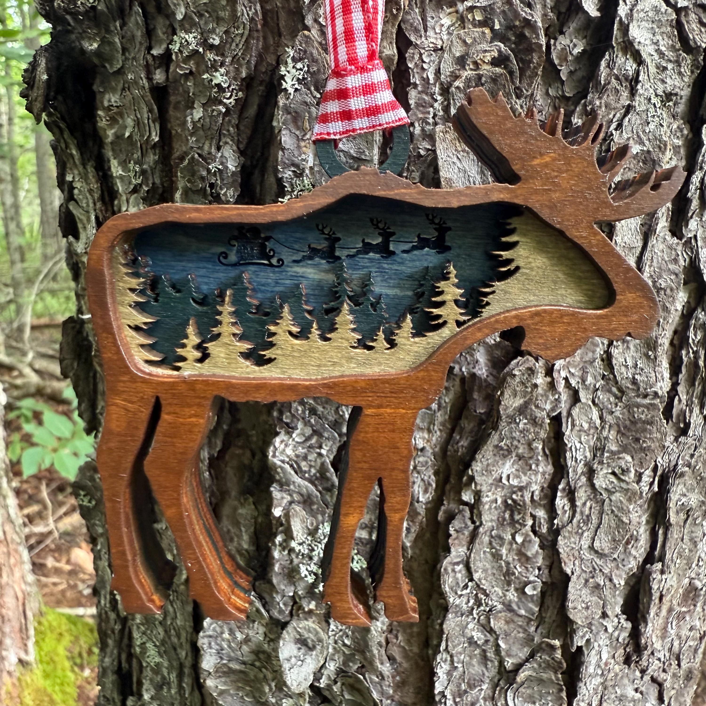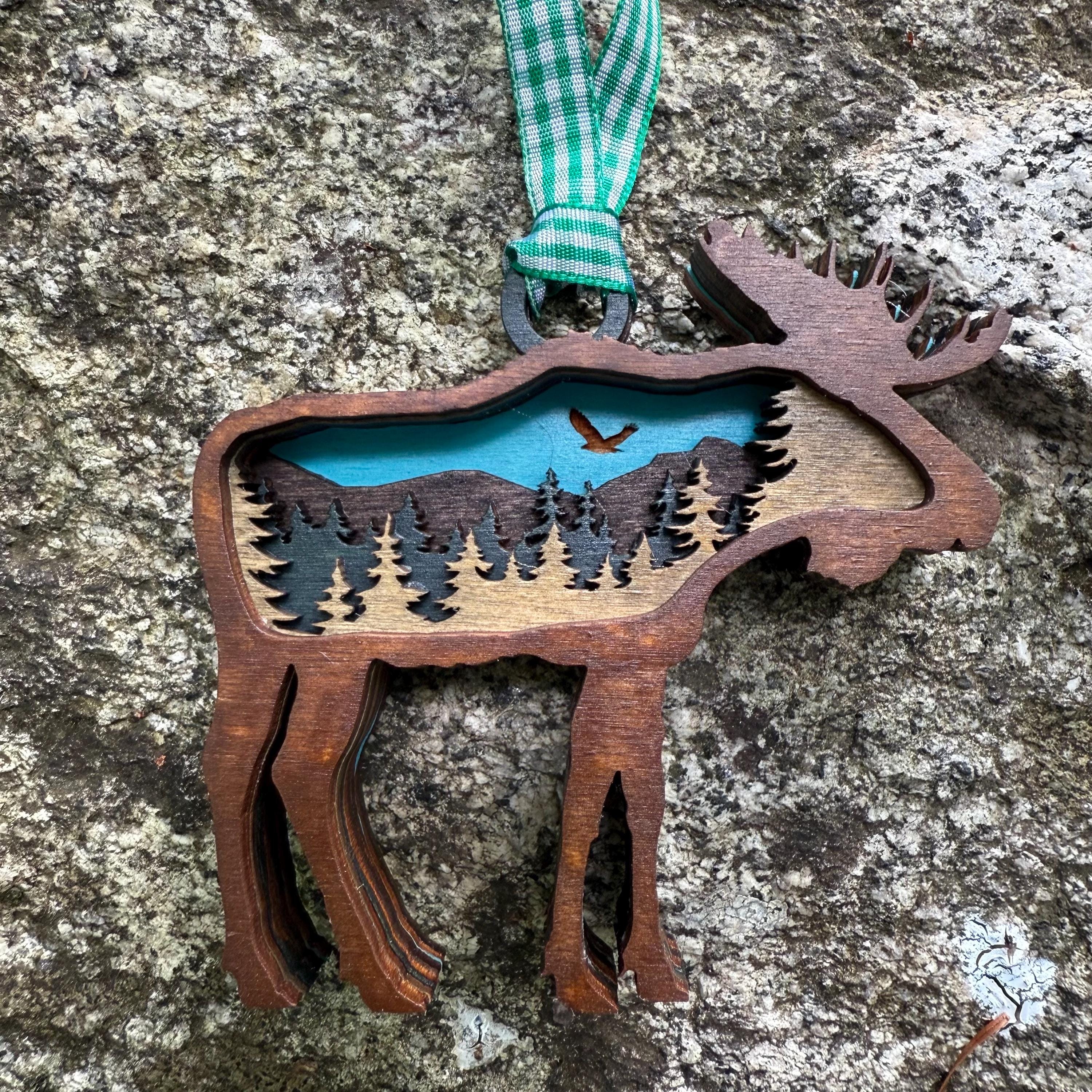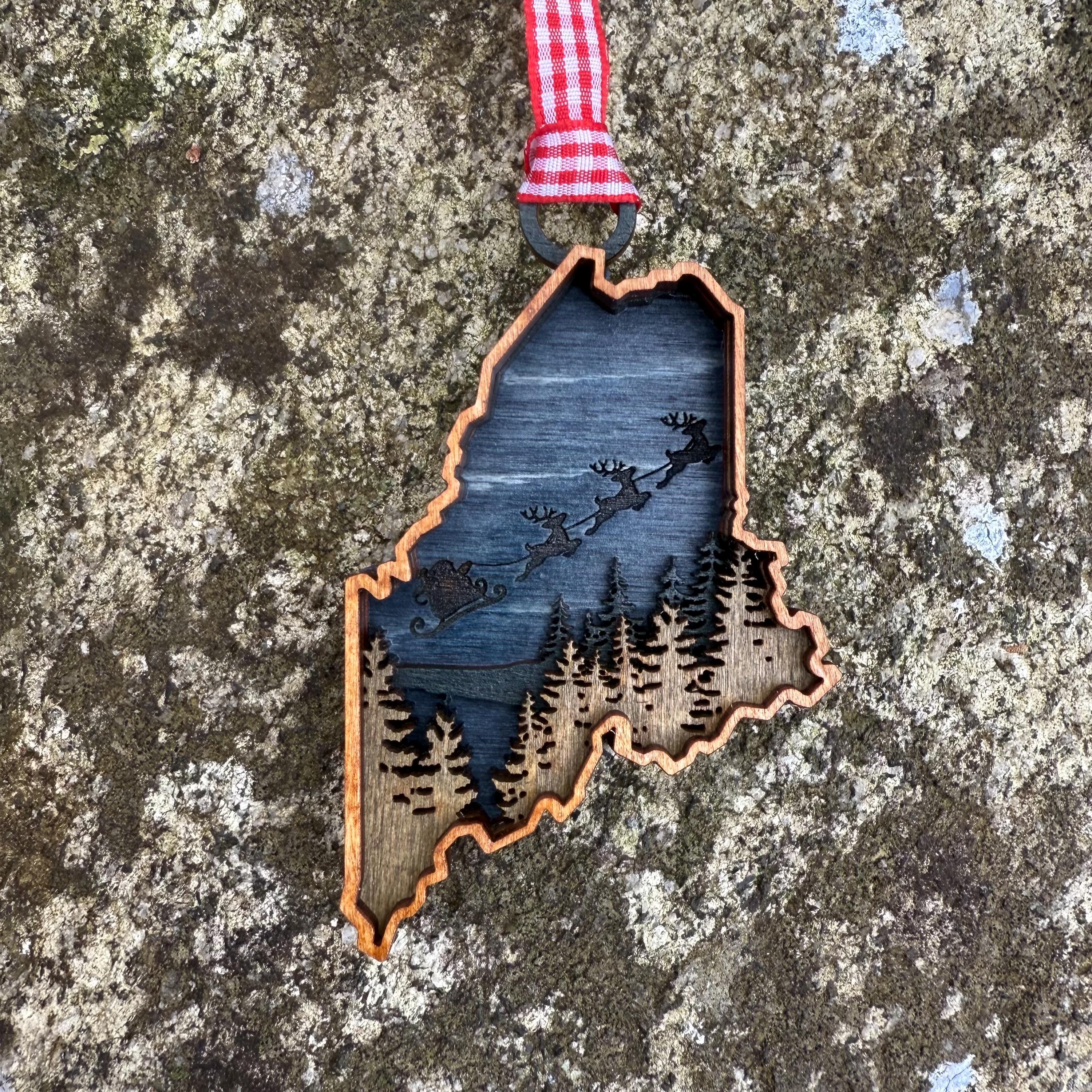 Add a bit of New England and Maine to your holiday decor with one of these handcrafted wooden ornaments! Created from 5-6 stacked layers of precisely cut and stained birch plywood, these rustically-styled ornaments are colorful and captivating, with checkered ribbon lanyards to complete the festive holiday look. Each and every ornament varies in some small detail from the next, making each one unique! Handcrafted in DownEast Maine - limited quantities available!