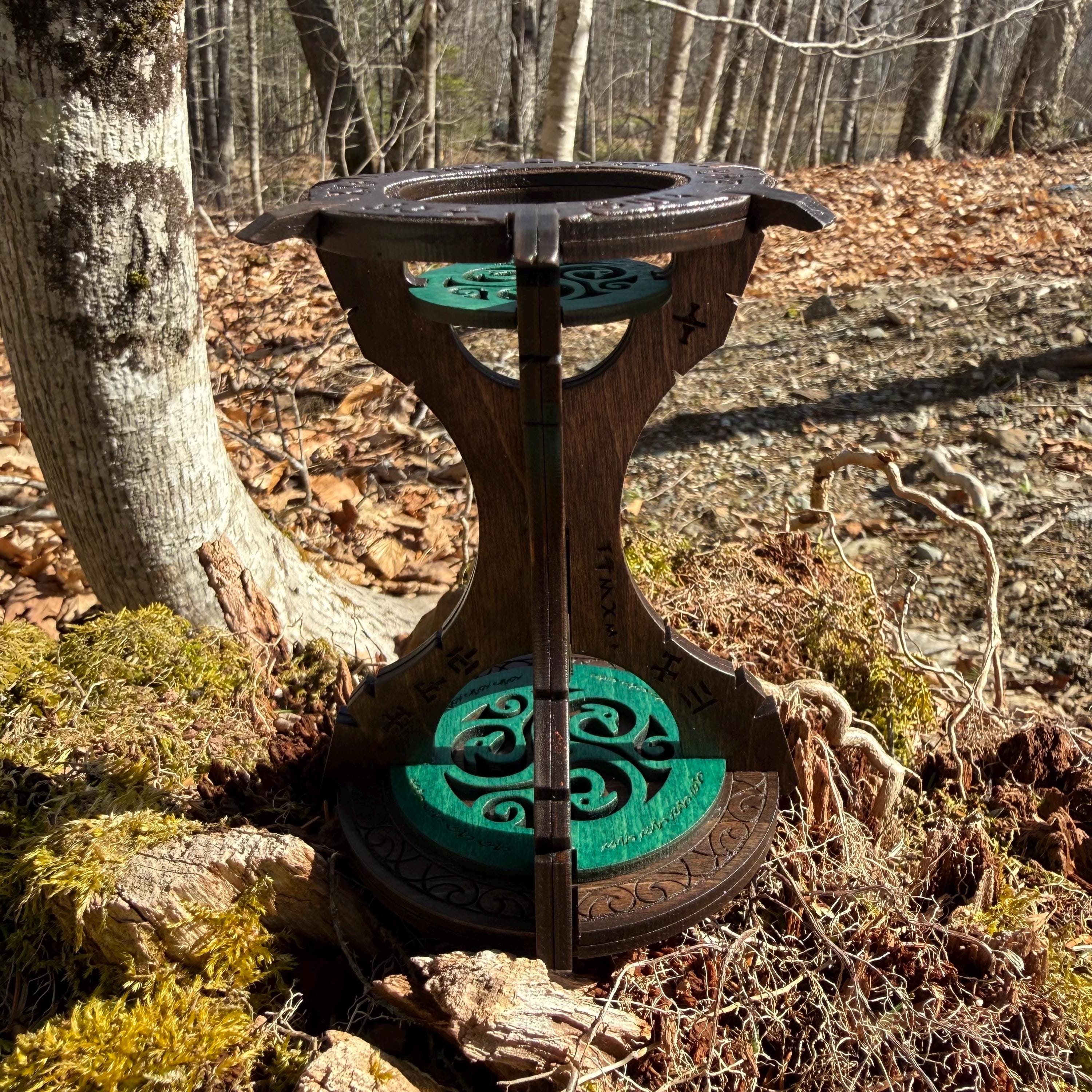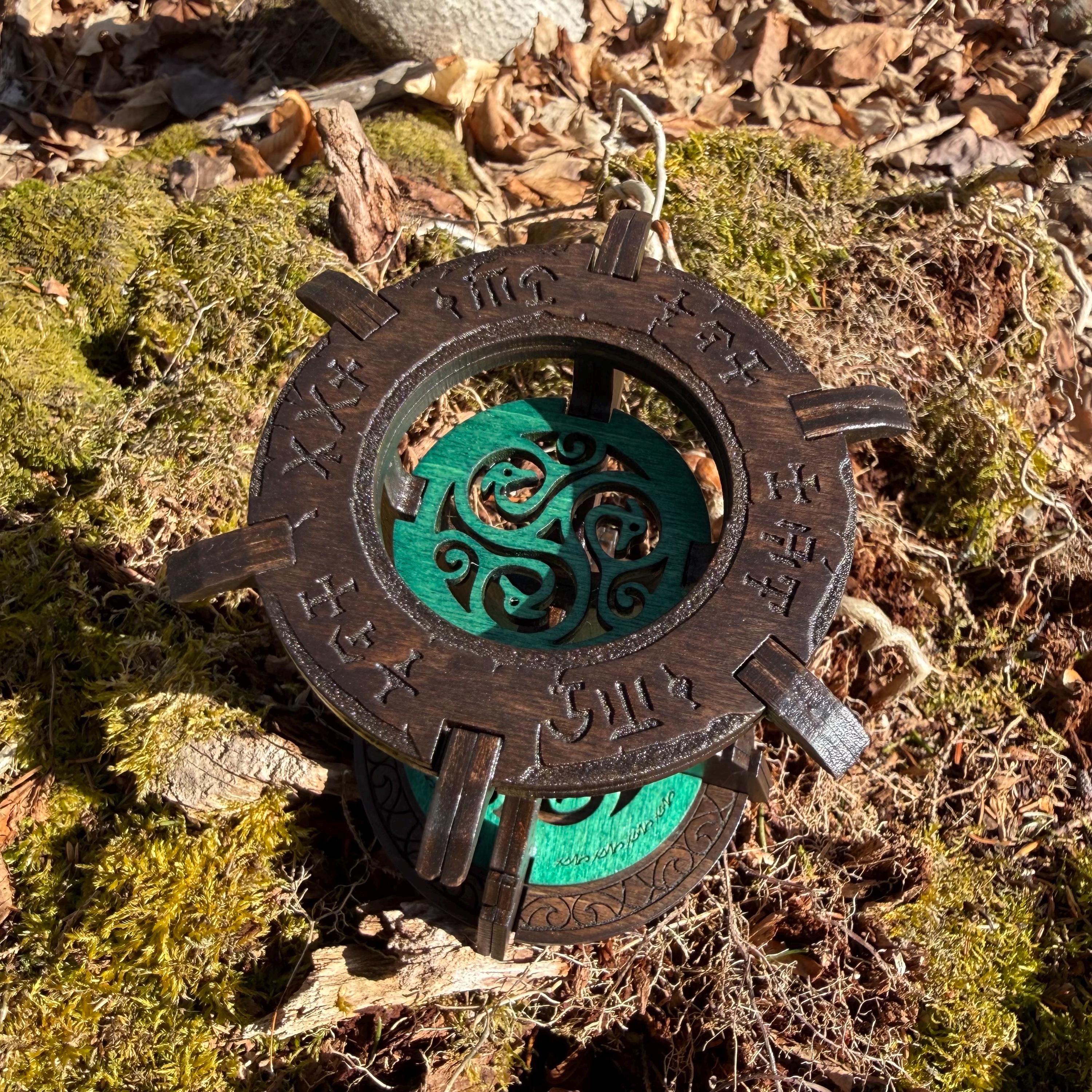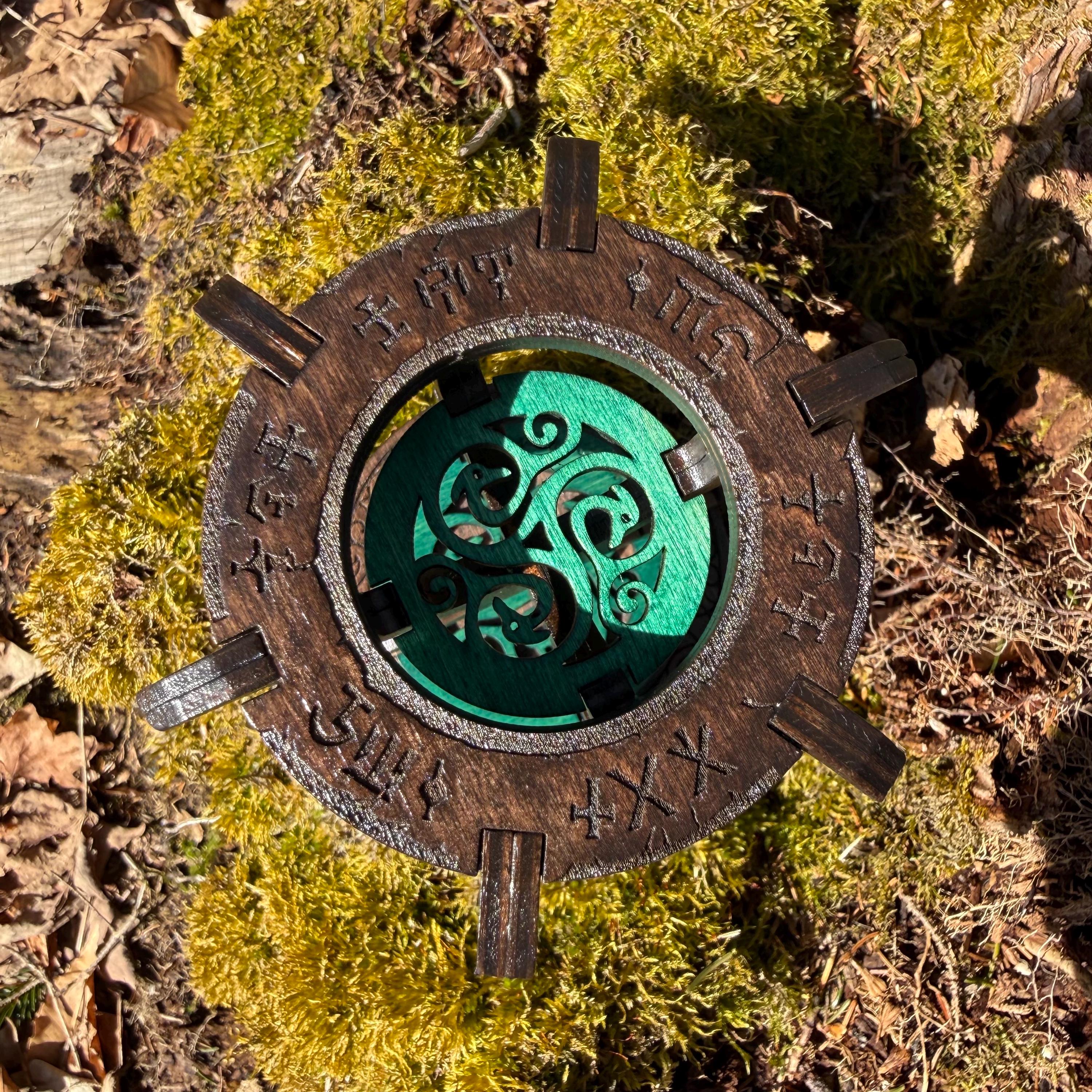 Add a touch of mystical energy to your home décor with this handcrafted wooden candlestick! Perfect for votive or tealight candles, this decorative, magically-themed candle holder makes a unique addition for those with a love of gothic or witchy aesthetics. This fully customizable candle holder allows for color selection and accent design choices, making it a perfect fit for any home. Add "Mystic Glimmer" to your favorite space and feel the magic!