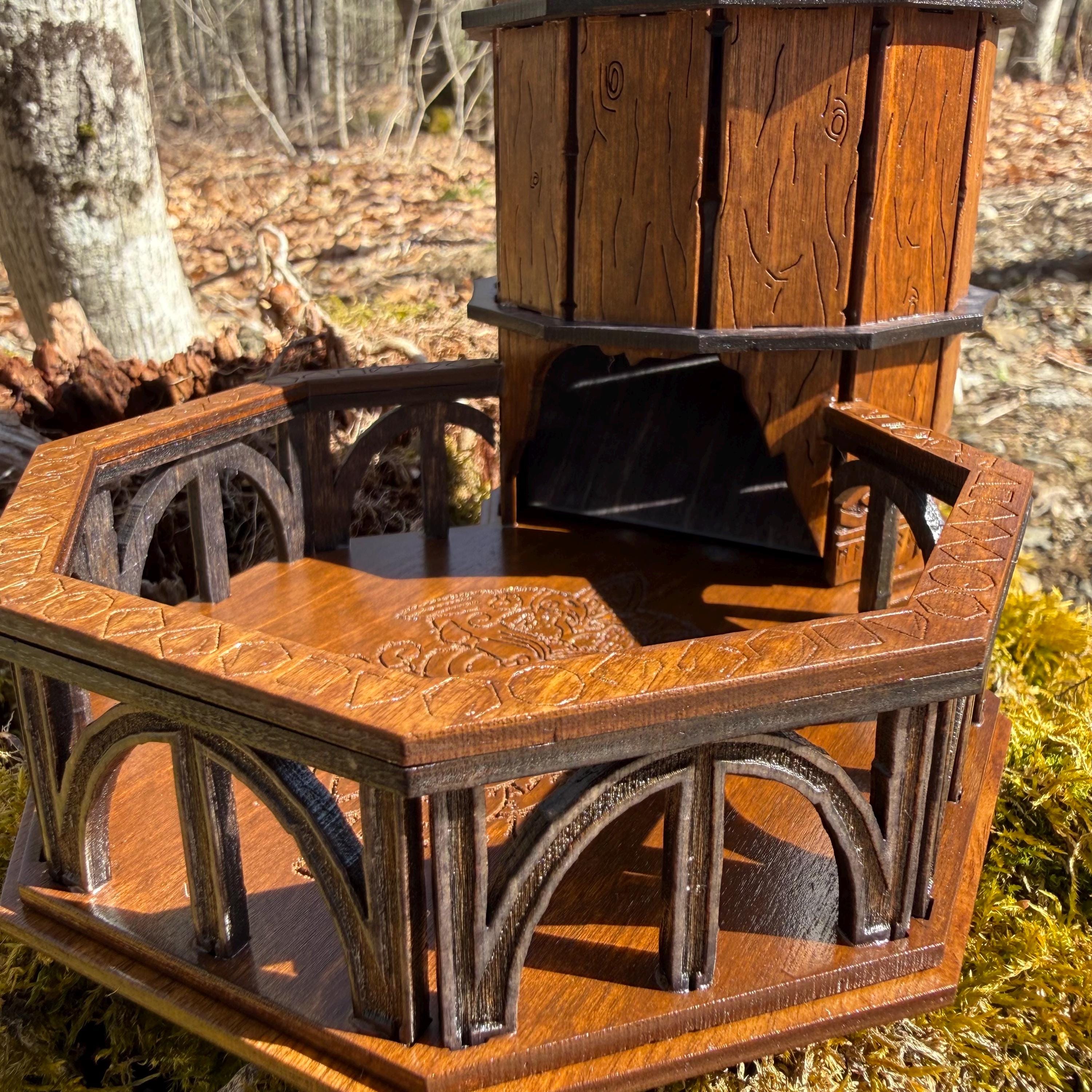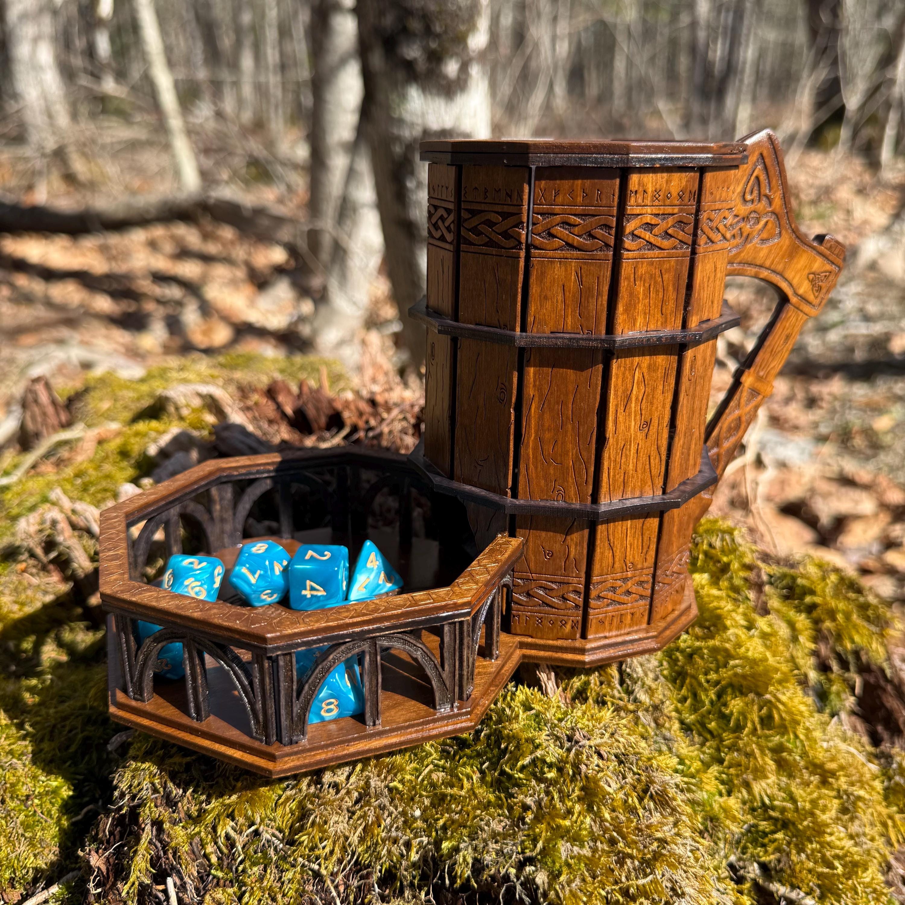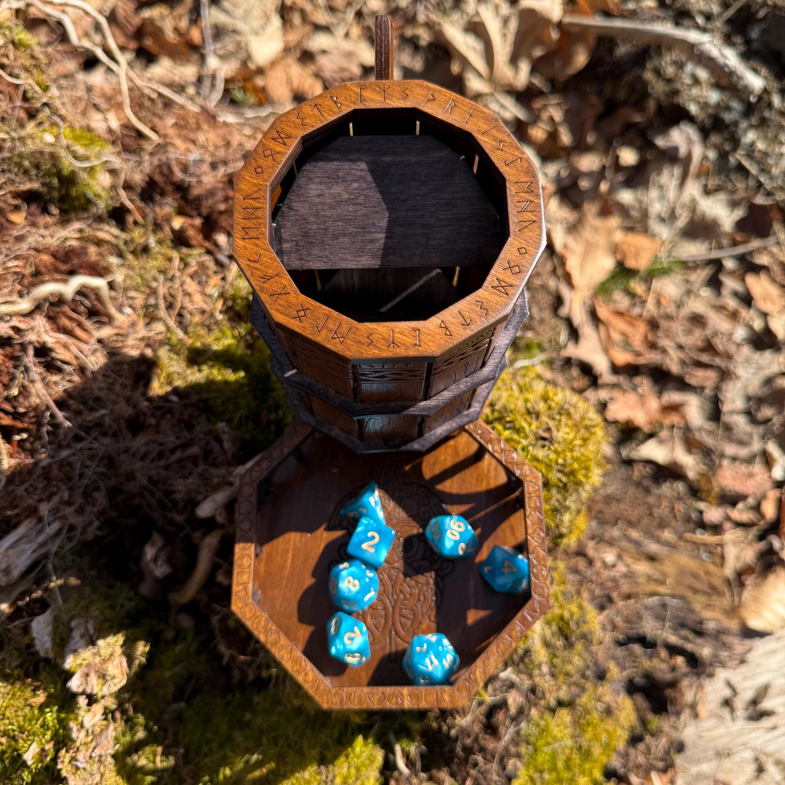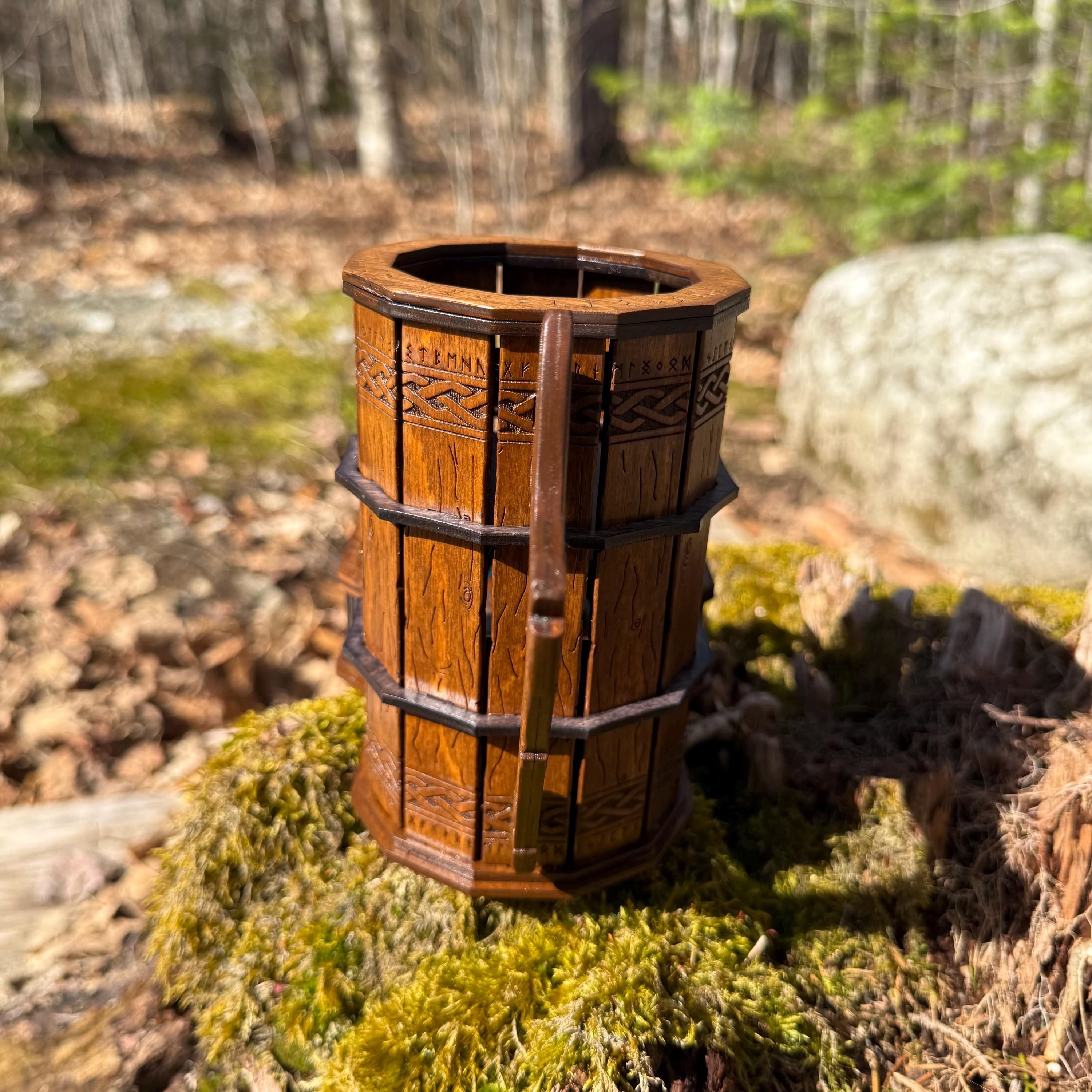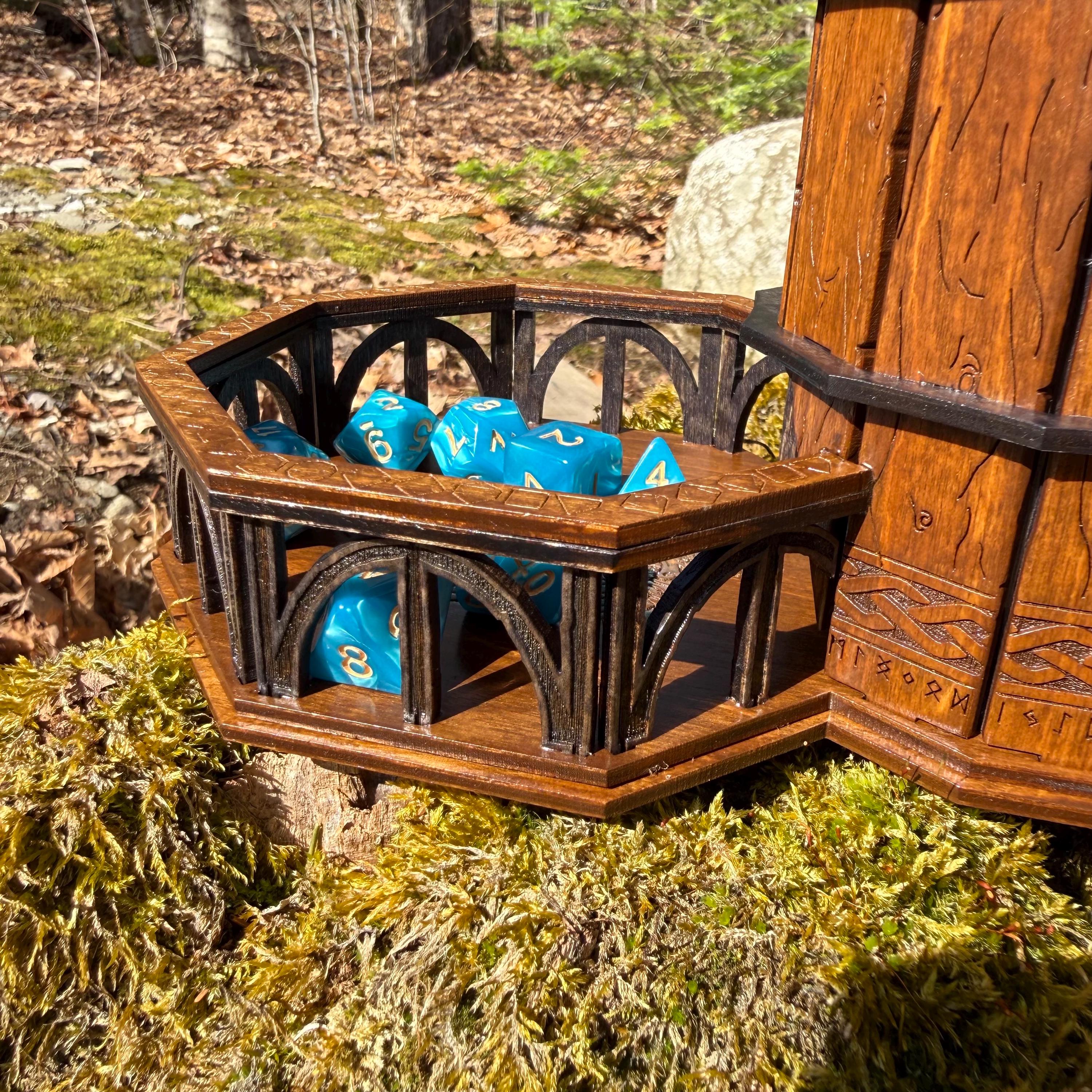 Immerse yourself in your next game night and weave epic tales of adventure with this handcrafted wooden dice tower! This laser-engraved, Nordic-themed dice tumbler is more than just a RPG accessory – it's a portal to illustrious gaming adventures and a handcrafted companion for your most memorable nights. Crafted from resilient birch plywood and engraved in high resolution detail, this dice tower is built to withstand countless gaming campaigns. A thematic and functional addition to any home game room, this tower is perfect for fantasy RPG players, board game enthusiasts, tabletop wargamers, or as a thoughtful gift for the imaginative adventurer in your life!